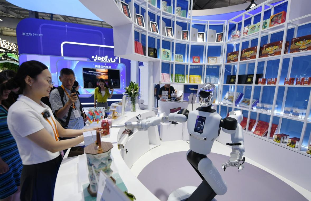 在AI时期波浪下,海淀区积极建立东说念主工智能产业高地和寰宇一流文化强区,聚首了东说念主工智能企业1900余家,备案大模子95款。“AI海淀 文润往时”,在海淀展位,你不错感受东说念主工智能何如解锁千行百业:走进基于诬捏现及时候打造的千里浸式VR大空间《梦回圆明园》,感受生数Vidu与快手可灵两大模子再行界说的视频本质创作,用“AI电影机”毛糙操作几下就生成以我方为主角的文旅大片,与“元萝卜AI棋战机器东说念主”对弈边学边练,通过数字时候交互完成非遗曹氏风筝制作……