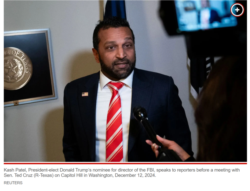 尽管这份发达并未告成点名,但抽象发达执行以及知情东谈主士向CNN涌现的音信,其时担任好意思国众议院谍报委员会认真东谈主的卡什·帕特尔,其个东谈主信息也在FBI的深邃监控鸿沟。《纽约邮报》在13日的报谈标题中称:“FBI曾深邃监控了或将成为他们下任局长的东谈主”。